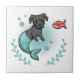Esta é uma ilustração do vetor de um pitbull da sereia e de seu amigo pequeno dos peixes. O cão da sereia tem uma coroa da estrela em sua cabeça. Há uma grinalda da alga na parte inferior.