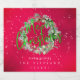 PixDezines uma elegante caligrafia moderna em dourado falso Cumprimentos de Fim de Ano, rótulos Vermelhos de Natal iridescentes e ramos de inverno de agulhas de pinheiro, frutos de azevinho e visco.