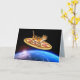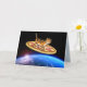 PIZZA DE CAMADA DE GATO NO CARTÃO DE ANIVERSÁRIO ESPACIAL.