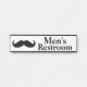 Placa conhecida da porta do local de repouso dos homens com gráficos de um bigode preto no lado esquerdo. O texto feito sob encomenda preto pode ser personalizado para ler o que você quer.