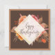 Cartão de Ação de Graças Feliz de Letras Florais. Este design apresenta lindas aquarelas que caem flores florais. Em tons de marrom, laranja, burlando e ouro no outono.