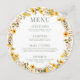 Incêndio em uma elegância vibrante com nosso cartão de cardápio de primavera/verão. Apresentando uma coroa de flores amarelas e delicado texto verde empoeirado, ele acrescenta o toque perfeito para melhorar sua experiência de jantar. Explore nossa seleção para uma adição inspirada na sazonalidade à sua celebração.
