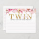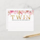 Compartilhe sabedoria e desejos calorosos com este cartão cor-de-rosa e dourado, especialmente concebido para um chá de fraldas para raparigas gêmeas. Apresentando flores de aquarela macia e sotaques elegantes de ouro falso, é uma adição encantadora a qualquer mesa. Convidados podem escrever anotações incríveis para os novos pais tesourarem por anos.