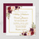 Cartão de Convite Dourado para Casamento da Elegante Watercolor Floral Marsala - Esquadrão Dourado - Borgonha Borgonha de Marsala - Esquadrão - Borgonha