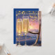O brilho macio do ouro de flautas de champanhe cheias de bebida espumante é acompanhado pela queda do confete da estrela ouro, criando uma vibração festiva. Um buquê de rosas cor-de-rosa pinceladas adiciona um toque de calor e sofisticação, enquanto o tranquilo pôr do sol do oceano ao fundo sugere um novo começo pacífico. Esta cena incorpora a alegria, elegância e entusiasmo que acompanhariam um marco como a aposentadoria. Ajuste as informações de acordo com seus arranjos, não se esqueça de adicionar a hora de início do evento.