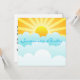 A Placa de Convite de festas de Verão de Sunrise mostra o desenho da ascensão solar acima das nuvens mostrando um dia agradável para uma festa. A "Festa de Verão" pode ser alterada para qualquer estilo de texto ou palavra. No verso, adicione suas informações para a festa.