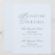 Adicione um toque refinado e pessoal ao bar do seu casamento com este elegante letreiro de coquetéis com assinatura em azul poeirado. Projetado em um estilo de arte fina atemporal, esta peça apresenta tipografia de roteiro delicada combinada com uma fonte serif clássica, criando uma estética sofisticada e romântica.