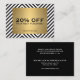 Coordena-se com o Modelo de cartão de negócios de logotipo de nome Dourado padrão preto-e-branco retrorreflector até 1201AM. A caixa de ouro metálica falsa desenhar atenção à sua promoção de desconto. Personalize os campos com seu próprio texto e informações. Estes cartões de cupão de desconto são excelente de salões, boutiques, cabeleireiros, compres de presentes e muito mais. © 1201AM CREATIVE