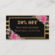 Listras pretas e ouros elegantes modernas, pretas e elegantes, com flores cor-de-água rosa na borda do ouro e cartão de visita de desconto do código QR no fundo do ouro. Você pode mudar facilmente todos os detalhes, fontes, cor, tamanho e cor de fundo, frente e verso de ambos os lados. Substitua o seu próprio código QR no seu site na conta de mídia social.