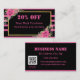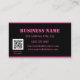 Listras preto e rosa quente elegantes modernas, pretas e pretas, com ouro de borda d'água, flores cor-de-rosa rosa e cor-de-água e cartão de visita de desconto do código QR no fundo rosa quente. Você pode mudar facilmente todos os detalhes, fontes, cor, tamanho e cor de fundo, frente e verso de ambos os lados. Substitua o seu próprio código QR no seu site na conta de mídia social.