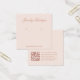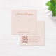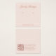 Uma simples placa de exibição de brinco rosa: apenas texto rosa (mais escuro) em fundo rosa pálido. O nome está escrito em uma caligrafia elegante' embaixo, os locais errantes indicados por dois círculos muito pequenos. O site escrito fecha a fronteira inferior. Há mais informações no verso, na parte inferior. Ele também tem o código QR na parte traseira, à esquerda das informações.