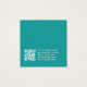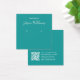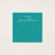 Um cartão de exibição de brinco de face minimalista: apenas texto branco sobre fundo lacrimogêneo, com os locais de brinco indicados por dois círculos muito pequenos. O nome está escrito em uma escrita moderna. Ele tem um bacalhau QR na parte de trás, na parte inferior, à esquerda da informação.