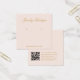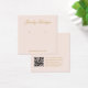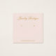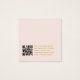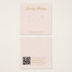 Uma simples placa de exibição de brinco rosa e dourado: apenas texto de ouro em fundo rosa-pinto-pincelado. O nome está escrito em uma caligrafia elegante' embaixo, os locais errantes indicados por dois círculos muito pequenos. O site escrito fecha a fronteira inferior. Há mais informações no verso, na parte inferior. Ele também tem o código QR na parte traseira, à esquerda das informações.
