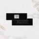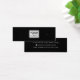 Miniplaca de exibição de cor preta ou personalizada com miniproduto com modelo de logotipo personalizado centralizado e ícones de mídia social. As guias de brinco podem ser ajustadas adicionando e removendo espaços no campo modelo e movendo todo o elemento na ferramenta design.