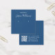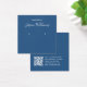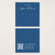Um cartão de exibição clássico de brinco azul: apenas texto branco sobre fundo azul clássico, com os locais de brinco indicados por dois círculos muito pequenos. O nome está escrito em uma escrita moderna. Ele tem um bacalhau QR na parte de trás, na parte inferior, à esquerda da informação.