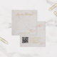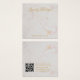 Um simples, mas elegante cartão de exibição de mármore e brinco de ouro: apenas texto de ouro sobre fundo de mármore branco. O nome está escrito em uma caligrafia elegante' embaixo, os locais errantes indicados por dois círculos muito pequenos. O site escrito fecha a fronteira inferior. Há mais informações no verso, na parte inferior. Ele também tem o código QR na parte traseira, à esquerda das informações.