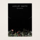 Este design apresenta uma fileira de flores silvestres de aquarela delicadas, colocadas sobre um fundo preto. Personalize com seu nome e informações comerciais.