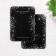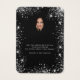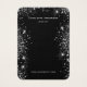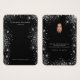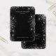 Um cartão para seu brinco ou joias feitos à mão. Um fundo preto clássico, texto branco.Decorado com pó cintilante prateado sujo. Personalize e adicione seu nome e informações de contato na frente. Voltar: adicione sua foto de perfil no verso e use a oportunidade de contar aos seus clientes a história sobre sua marca. Excluir se não desejar.