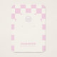 Placa de exibição com um padrão de verificação rosa-giro. Os orifícios de modelo podem ser ajustados ou excluídos, bem como todas as informações de sua empresa. Adicione sua mídia social ou site à parte inferior.