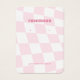Placa de exibição com um padrão de verificação rosa-giro. Os orifícios de modelo podem ser ajustados ou excluídos, bem como todas as informações de sua empresa. Adicione sua mídia social ou site à parte inferior.