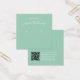 Um simples cartão de exibição do brinco da casa da moeda: apenas texto branco sobre fundo verde da casa da moeda, com os locais de brinco indicados por dois círculos muito pequenos. O nome está escrito em um roteiro elegante. Ele tem um código QR na parte de trás, na parte inferior, à esquerda da informação.