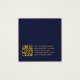 Um simples cartão de exibição de brinco de marinho e ouro: apenas texto de ouro sobre fundo azul de marinho. O nome está escrito em uma caligrafia elegante' embaixo, os locais errantes indicados por dois círculos muito pequenos. O site escrito fecha a fronteira inferior. Há mais informações no verso, na parte inferior. Ele também tem o código QR na parte traseira, à esquerda das informações.