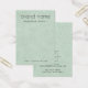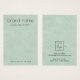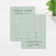 A ouvir o cartão de exibição do produto com a sua marca numa fonte moderna de script numa textura de fundo verde-claro e suave. Texto e logotipo personalizáveis no verso.