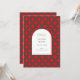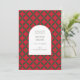 Partilhe desejos festivos com este bonito cartão de férias vermelho e verde. Apresentando um elegante padrão moderno de meio século com formas geométricas ousadas, sotaques florais, estrelas de abstrato, estilo de vintage funky e tipografia clássica, este design único traz o charme do eterno para as saudações de inverno.