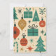 Envie desejos de na moda com este cartão de feriado moderno de meio século verde e vermelho. Apresentando formas geométricas bonito e elegantes, starburst de abstrato funky, tipografia inspirada em vintage, pinheiro e bagas, flocos de neve e um sotaque adorável, este design adiciona estilo de eterno às suas saudações de inverno.
