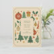 Envie desejos de na moda com este cartão de feriado moderno de meio século verde e vermelho. Apresentando formas geométricas bonito e elegantes, starburst de abstrato funky, tipografia inspirada em vintage, pinheiro e bagas, flocos de neve e um sotaque adorável, este design adiciona estilo de eterno às suas saudações de inverno.