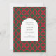 Partilhe desejos festivos com este bonito cartão de férias verde e vermelho. Apresentando um elegante padrão moderno de meio século com formas geométricas ousadas, sotaques florais, estrelas de abstrato, estilo de vintage funky e tipografia clássica, este design único traz o charme do eterno para as saudações de inverno.