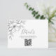 Cartão de cerimônia de noivado com código QR floral preto. Fácil de alterar o texto e adicionar o URL ao código QR.
