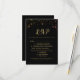Esta placa RSVP é especialmente projetada como parte de nossa suíte de casamento Shimmering Sparkles. Dê aos seus hóspedes uma maneira fácil de aceitar ou recusar seu convite e informe quantos hóspedes estarão participando. A design apresenta um elegante, porém caprichoso, design de um ouro e estrelas cor-de-rosa com texto dourado sobre fundo preto.