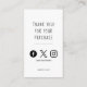Compartilhe a apreciação com uma publicação monocromática ousada, com a inscrição "Obrigado pela sua compra" e espaços proeminentes para os identificadores Instagram, Facebook e X para encorajar a sua rápida apresentação. O layout limpo deixa espaço para uma nota curta, um site ou detalhes de compro, fazer-o como um complemento versátil para encomendas do Etsy, pop e pacotes de itens. Os ícones sociais são impressos em preto para leitura nítida e podem ser trocados ou atualizados mediante solicitação.
