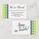 Mantenha seus amigos e familiares atualizados com seu novo endereço usando esses cartões de compartimento coloridos e ousados. Os destaques da tipografia versátil leem "Nós nos movemos" na frente e "Fique em contato!" nas costas, usando uma fonte moderna e casual. Nas extremidades opostas de cada lado adicionei gráficos de sotaque com riscas brilhantes e pontilhadas. A paleta nestas imagens bonito inclui verde limão, azul de ovo do robin, cinzas escuras e branco. Use os campos modelo para adicionar todos os seus detalhes exclusivos e personalizar este design para seu próprio uso. Todo texto é renderizado em cinzas escuras correspondentes e as fontes podem ser alteradas se você quiser editar o design. // Concebida por Melody Watson para Paper Muserie.