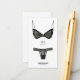Cartão de Lingerie com sutiã de renda preta feminina e calcinha. Personalize com as medidas de roupa íntima da noiva. Excelente de encurtar com convites de festa de solteira para pedir às meninas para trazer à noiva algo especial para a lua de mel.