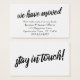 Mantenha seus amigos e familiares atualizados com seu novo endereço usando esses cartões de gabinete simples e elegantes. Você pode inseri-los em suas mensagens no tema do casamento ou compartilhá-los pessoalmente, como você vê ajustado. Quer você seja um recém-casado ou apenas queira uma design única para deixar sua tribo saber como encontrá-lo, esta carta é versátil o suficiente para qualquer um. Ele apresenta gráficos de tipografia bonito que leem "nós nos movemos" na frente e "ficamos em contato!" na parte de trás, usando uma fonte moderna, elegante e ousada de script. Use os campos modelo para adicionar todos os seus próprios detalhes para personalizar este design para seu próprio uso. Se você quiser alterar a fonte versátil, serif que usei para o texto editável ou se quiser mover algumas linhas para outro lugar, clique no link para personalizar a placa ainda mais. O tipo preto foi colocado sobre um fundo branco editável; você pode mudar o plano de fundo para qualquer cor que desejar. // 89 // Concebida por Melody Watson para Paper Muserie.