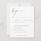 Esta placa RSVP foi projetada para elogiar o Convite para Casamento da Serenidade Elegante — uma corporificação eterno de beleza refinada que captura a essência do amor e da unidade. Este conjunto de convites é uma obra-prima da design, com uma excelente combinação de elementos que harmoniza perfeitamente a estética moderna com a sofisticação clássica. Colocada contra um fundo branco primitivo, este cartão RSVP exude um senso de pureza e simplicidade que fala sobre a pureza do seu amor e a sinceridade do seu compromisso. A tipografia moderna e simples acrescenta um toque de talento contemporâneo enquanto permite que a beleza da design brilhe. A suíte de convites para o casamento da Serenidade Elegante é um testemunho da beleza da sutileza e do poder da elegância subestimada. Suas linhas limpas e fontes sofisticadas criam um ar de grandiosidade silenciosa, convidando seus entes queridos a testemunhar uma celebração que é graciosa e profundamente significativa. Quer você esteja planejando um caso lento ou uma reunião íntima, esta placa RSVP se adapta sem esforço à sua visão. Serve como uma ponte entre o passado e o futuro, celebrando a imprevisibilidade do amor de uma forma que é simultaneamente moderna e clássica. Faça uma declaração com um convite que conta uma história de amor, unidade e elegância eterna. A suíte de Convite para Casamento de Serenidade Elegante é mais do que um convite — é uma introdução a uma celebração tão bela e única quanto a própria história de amor.
