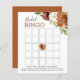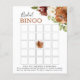 Este Cartão de Jogo Bridal Bridal de Casamento Floral com uma aquarela desenhando galhos verdes e rosas cor-de-rosa pinceladas, florescentes flores de burguês e laranja escuro sobre fundo branco irá decorar perfeitamente a festa da noiva do outono. O reverso do Bingo Bridal é uma cor laranja escura.