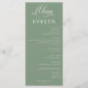 Menu folha única, tamanho: 10,16 x 22,86 cm, papel: Semi-brilho Básico