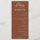 Menu folha única, tamanho: 10,16 x 22,86 cm, papel: Semi-brilho Básico
