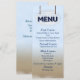 Menu folha única, tamanho: 10,16 x 22,86 cm, papel: Semi-brilho Básico