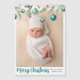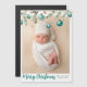 Os ornamentos bonitos de teal com lindas folhas de férias de aquarela penduram sobre sua fotografia de feriado vertical favorita. Cartão magneta de fotos de Natal Feliz com decorações bonito.
