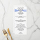 Realce a decoração adicionando um cartão de menu. Enquanto seus convidados aguardam a entrada da noiva e do noivo ou a apresentação do convidado de honra, eles podem encontrar um cartão de menu em seu cenário, acrescenta um toque agradável. Personalize e crie o menu adicionando e alterando o texto nos campos fornecidos frente e verso. Você pode alterar o estilo, o tamanho e a cor da fonte, bem como o tipo e o estilo do papel.