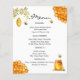 Adicione um doce toque ao seu chá de fraldas com este adorável menu de Abelhas e Ursos de Mel. O design emparelhado com texto personalizável permite que você exiba o menu de chá de fraldas com estilo, fazer-o como uma adição atraente às configurações de mesa ou buffet. Seja para brunch, almoço ou janto, este menu trará um toque de elegância e elegância para o seu evento. Impresso em papel de alta qualidade com cores vibrantes, é funcional e um prazer para os pais!