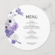 O cartão de menu circular plana (Wedding) é criado por szdesign. Design apresenta flores de aquarela roxas no canto inferior esquerdo e fundo branco. Disponível há muitos tamanhos diferentes de cartões. Embora esteja ligado ao casamento, é adequado para muitas ocasiões no caso de a combinação de flores brancas e roxas ser adequada para a decoração púrpura/lavanda escolhida. O processo de personalização fácil começa com o botão 'PERSONALIZAR' que lhe dá o cartão de menu automaticamente para o seu propósito. Para itens correspondentes, escreva B215 na caixa de pesquisa desta loja para encontrar a Coleção ou cópia de Sinfonia Floral Púrpura e colar o seguinte link: https://www.zazzle.com/collections/purple_floral_symphony_b215-119463307660758307 Caso precise de ajuda, não hesite em entrar em contato comigo: szdesigns2021@gmail.com