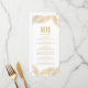 Cartão de menu moderno e na moda, com cones e agulhas de folha de papel dourada falsos com tipografia simples. Este cartão festivo será perfeito para eventos de férias como casamentos de férias.