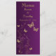 Placa de Menu Floral com Borboleta Roxa e Dourada
