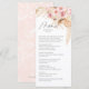 Watercolor Boho Floral Pampas Gras Janto Casamento Menu. Linda flor botânica rosa-rosa pincelada na parte de trás do cartão. Este cartão de janto de casamento é a escolha perfeita para ser colocado em cima do prato de casamento para o casamento de boho.