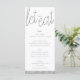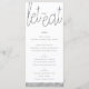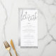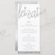 Personalize o menu do seu evento com estes bonitos cartões de menu! Cada placa apresenta um design de pincel pintado à mão com uma inscrição cursiva moderna na frente e uma folha de fundo com um padrão de linha de estilo de deco de arte na parte de trás! Você pode personalizar todos os detalhes do menu. Esta placa é certamente um fator wow na configuração do seu mesa.